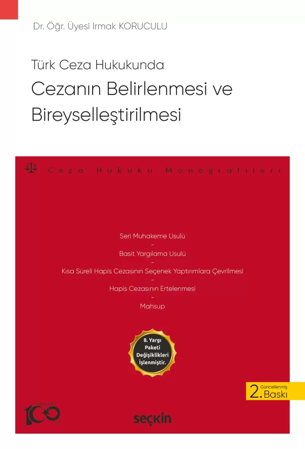 Kitapta, cezanın belirlenmesi ve bireyselleştirilmesi konusu tüm yönleriyle ele alınarak; 5237 sayılı Türk Ceza Kanunu'nun Cezanın Belirlenmesi ve Bireyselleştirilmesi başlıklı Üçüncü Bölümünde yer alan cezanın belirlenmesi (TCK m. 61), takdiri indirim nedenleri (TCK m. 62) ve mahsup (TCK m. 63) konuları ile cezanın bireyselleştirilmesi araçlarından kısa süreli hapis cezasının seçenek yaptırımlara çevrilmesi (TCK m. 50), hapis cezasının ertelenmesi (TCK m. 51) konuları açıklanmıştır.