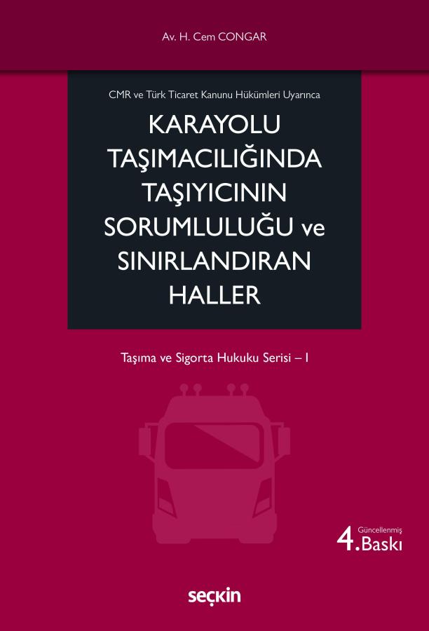 Taşıma ve Sigorta Hukuku serisinin birinci kitabı olan "CMR ve Türk Ticaret Kanunu Hükümleri Uyarınca Karayolu Taşımacılığında Taşıyıcının Sorumluluğu ve Sınırlandıran Haller" isimli bu eserde; özellikle karayolu ile eşya taşımacılığı uygulamasında karşılaşılan hukuki ihtilaflar ile taşıyıcının hukuki sorumluluğu kavramı ve sorumluluğun sınırlandırılması, 6102 sayılı Türk Ticaret Kanunu ve Türkiye'nin taraf olduğu CMR Konvansiyonu hükümleri çerçevesinde, Yargıtay ve yabancı mahkeme kararları bağlamında irdelenmiştir.
