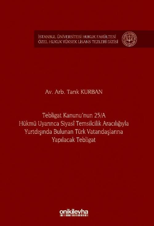 İşbu eser, yurtdışında bulunan Türk vatandaşlarına yapılacak tebligatı düzenleyen 7201 Sayılı Tebligat Kanunu'nun 25/A maddesi ve bu maddeye ilişkin ikincil mevzuat hükümlerini incelemektedir. Eserde, konunun daha iyi anlaşılması adına öncelikli olarak, tebligata ilişkin temel ilkeler, yurtiçi ve yurtdışında gerçekleştirilecek tebligata ilişkin başlıca usuller incelenmiştir. Daha sonra Tebligat Kanunu'nun 25/A hükmü uyarınca yapılacak tebligatın uygulama alanı, şartları, usulü, yapılacak işlemler, bu konuda yaşanan sorunlar farklı ihtimaller kapsamında, doktrin ve uygulamadan örneklerle ayrıntısı ile irdelenmiş ve bu konuda yaşanan sorunlara ilişkin çözüm önerileri ortaya konulmuştur. Çalışmada ayrıca, Tebligat Kanunu'nun 25/A hükmü ile düzenlenen tebligat usulünün milletlerarası hukuk bağlamındaki dayanağı, bu alanda oluşturduğu problemler, bu problemlerin tebligatın geçerliliğine etkisi irdelenmiş ve bu problemlerin çözümüne ilişkin öneriler gerekçeleriyle birlikte sunulmuştur.(ARKA KAPAKTAN)